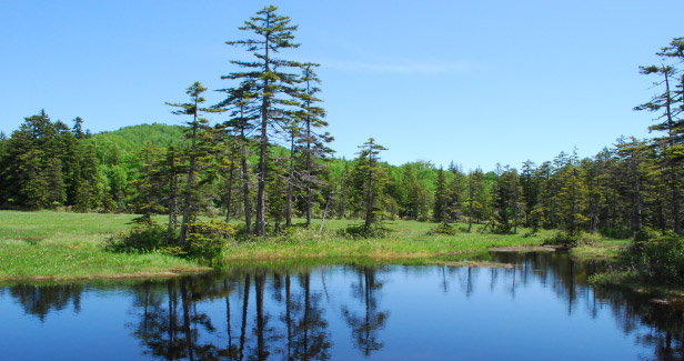 上川町と滝上町の間にある高層湿原です。面積約22haの湿地に大小合わせて約70個の沼が点在し、エゾヒツジグサ・モウセンゴケなどの植物が自生します。
