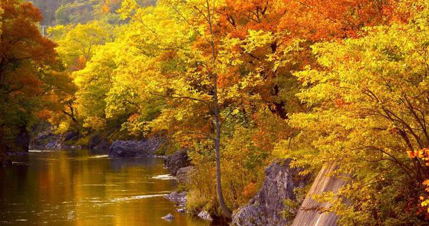 紅葉が美しい錦仙峡は滝上町の市街地中心部に位置しており、気軽に美しい渓谷を楽しめます。川の両岸には足に優しいウッドチップ舗装の遊歩道があり、紅葉のトンネルをくぐりながら散策ができます。