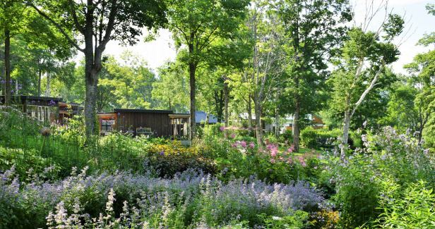 大雪山連峰が見える自然豊かなガーデン。まるで森の中に迷いこんだような、不思議な気持ちを味わうことができます。