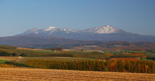 四国出身者の入植によって畑作地として開拓された、旭川空港南東の就実地区に広がる景勝地。ジェットコースターのようなアップダウンの道を過ぎると、大雪山連峰・十勝岳連峰などを一望することができます。
