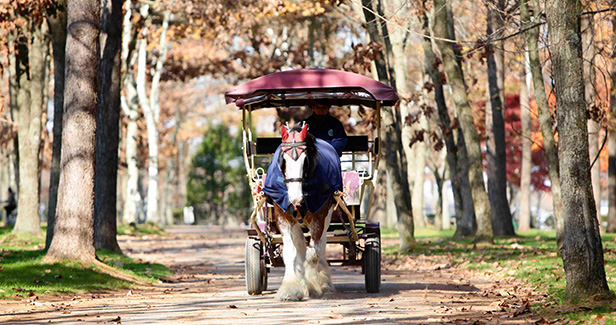 馬と気軽にふれあえるアクティビティをお楽しみください。賢く愛らしいポニーによる「ハッピーポニーショー」は毎日開催しております。