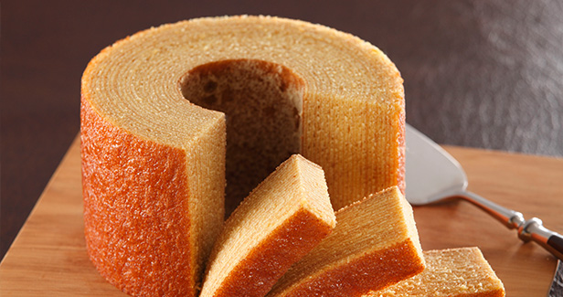 日本一の直線道路(国道12号線29.2㎞)沿いにある北菓楼砂川本店。おかきやバウムクーヘンなどの定番商品を販売のほか、ケーキセットやパフェなどの軽食を味わえる喫茶フロアもあります。