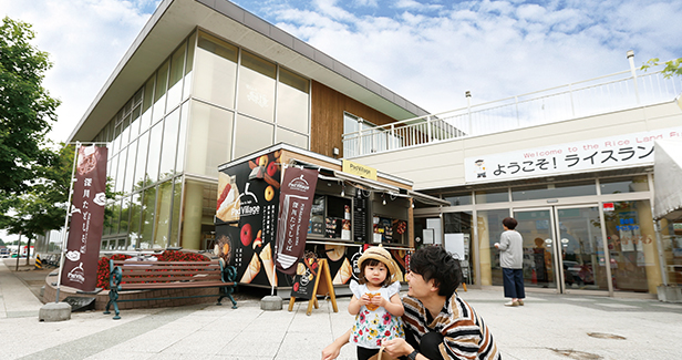 名産品の美味しいお米を使ったおにぎりや釜飯、お米を使ったスイーツなどが食べられるお店もある、お米のテーマパークです。