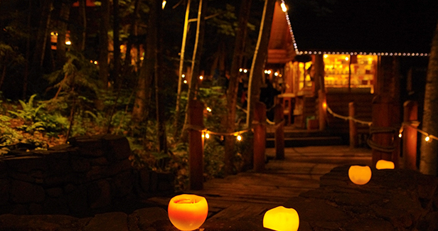 森の中に15棟のログハウスが連なるショッピングエリアのニングルテラス。富良野にしかない自然あふれるクラフト作品の販売をしています。夜にライトアップされた光景も必見です。