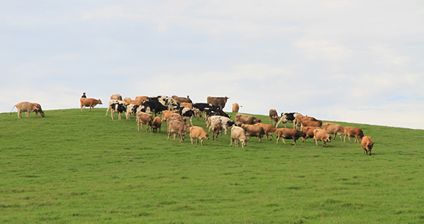 4種類の牛を通年放牧し、牛本来の行動ができるような飼い方を目指している牧場です。絞った生乳は隣接する加工プラントで牛乳やバターなどの乳製品に加工し、販売を行っています。