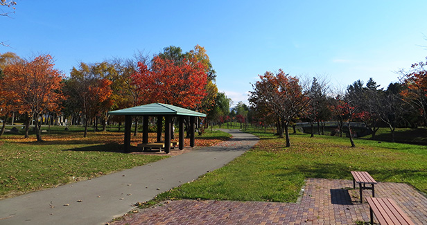 天塩川の豊かな水をたたえる大きな池が特徴的で、水辺を散策するのがとても気持ちいい公園です。水郷公園の名の通り紅葉の景色を眺めながら、貸しボートや水遊びが楽しめます。