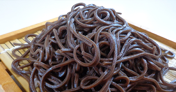 音威子府村の美味しい軟水で育った蕎麦の実を使用した「音威子府蕎麦」は麺が黒く、独特の香りと強いコシが特徴的です。