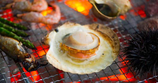 海の幸、山の幸に恵まれた留萌ならではの「るもい浜焼き」は、海や山の幸を爽やかな風を感じながら炭火で味わう事ができます。お問合せは、各店舗または観光コンシェルジュまでお尋ねください。