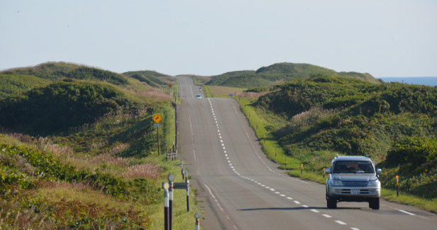 オロロンラインとは小樽から稚内までを結ぶ、計380kmの海岸線を走る道路です。特に留萌幌延間は、日本海に沈む夕日や雄大な利尻富士を眺めながらのドライブが楽しめます。