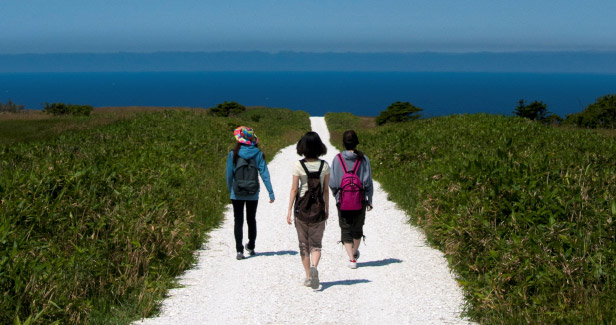 緑豊かな宗谷丘陵にある「白い道」は約3kmあり、稚内名産のホタテの貝殻を砕いて敷き詰めてできた一度は歩いてみたい道です。
