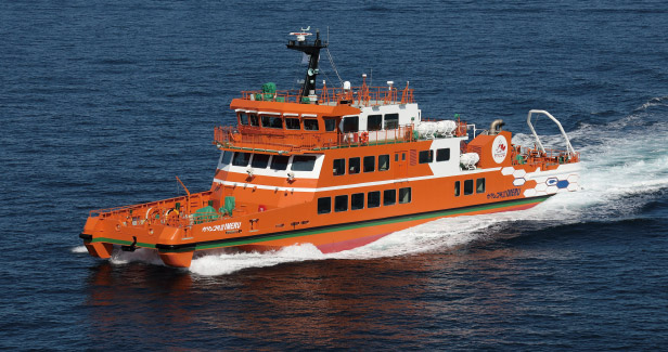 ガリンコ号はドリルを前方に装備し、回転させて船の重量で氷を割り、オホーツク海の流氷海域を航行する砕氷船です。大きな音を立てて砕かれた大きな氷塊の浮き沈みする景色は圧巻。