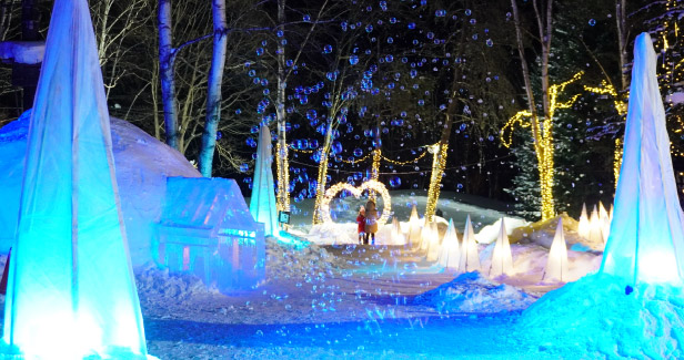 富良野に本格的な冬の訪れを知らせるイベント。イルミネーションで彩られた会場内では、氷だけで作ったスノードームの他にスノーチュービング、犬ぞり、スノーラフティングなどが楽しめます。